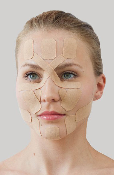 Процедура проводится после очищения лица и шеи, аппликации тейпов накладываются в зависимости от показаний (снятие отека, тонизация мышц). На лице кинезиотейп находится от 30 минут до 48 часов (время определяется индивидуально). Повторно аппликация накладывается через 3-5 дней. Снять тейп можно самостоятельно.