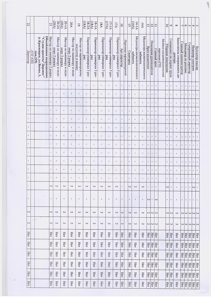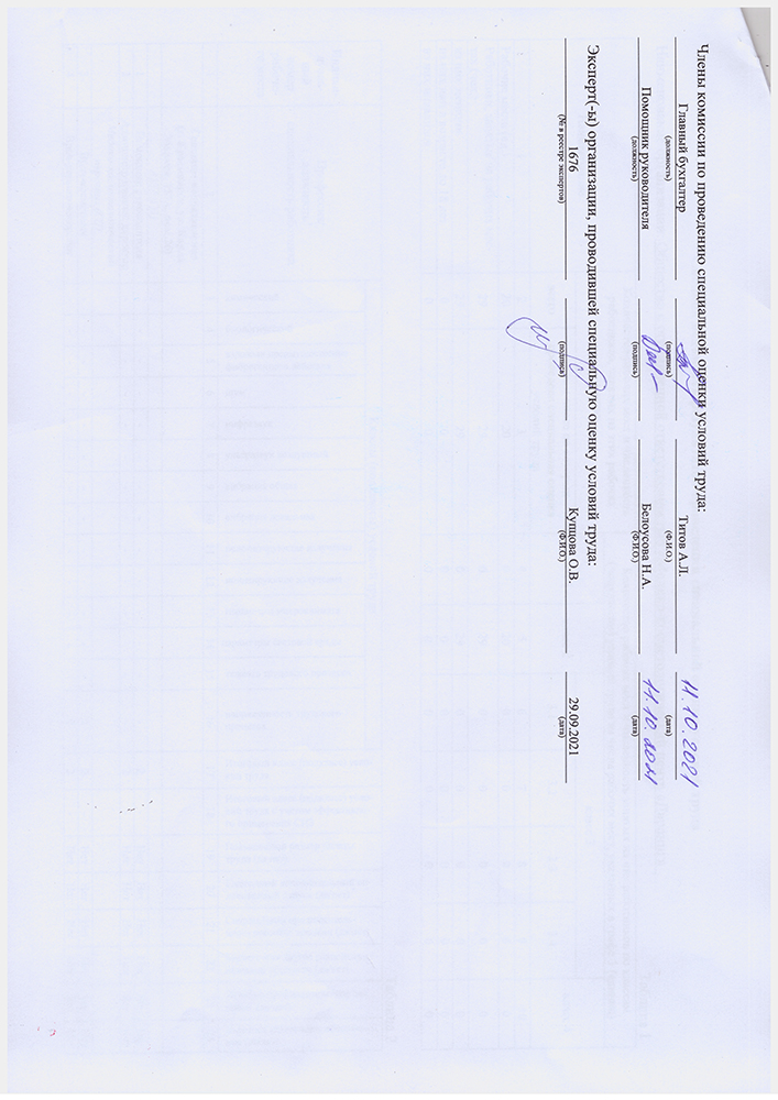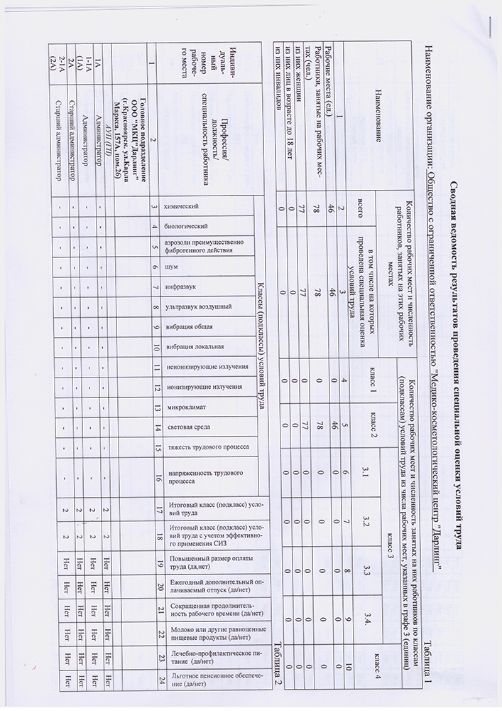 Сводная ведомость результатов проведения специальной оценки условий труда