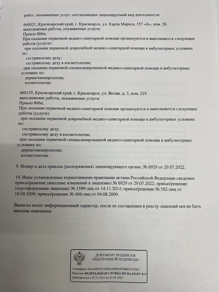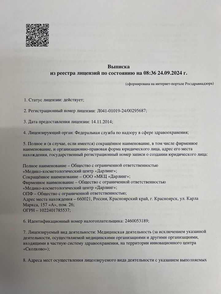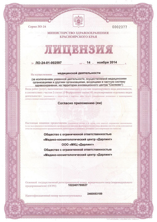 2. Лицензия на осуществление медицинской деятельности Салона красоты "Дарлинг":
