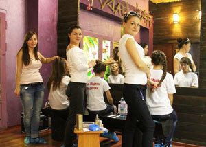 Мастера парикмахерского искусства салона красоты "Дарлинг": Моисеенко Ольга, Коротеньких Наталья, Цих Александра выполняли участницам конкурса прически и макияж.