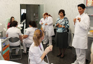 Обучающий курс включал два тематических блока: «Обработка проблемных ногтей. Протезирование ногтей. «Диабетическая стопа». В нем приняла активное участие мастер маникюра и педикюра салона красоты "Дарлинг" Синицына Лариса.
