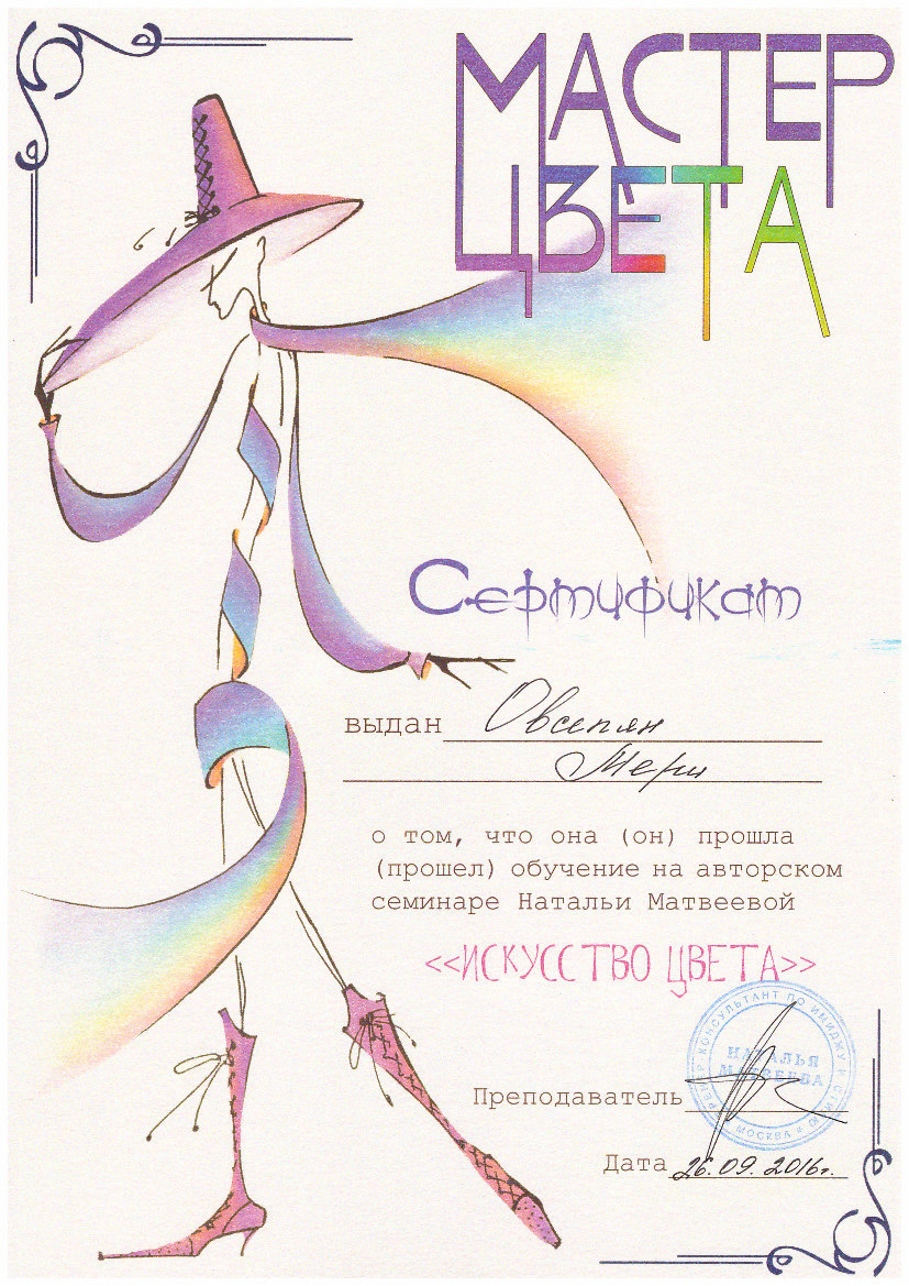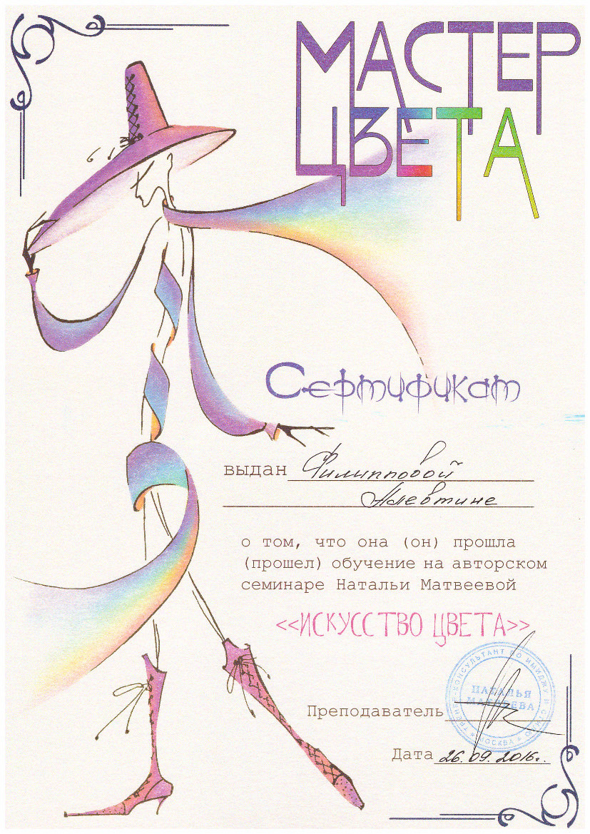 По итогам учебного семинара всем участникам курса было присвоено звание "Мастер цвета"