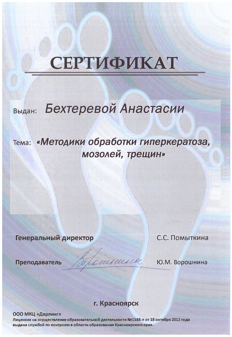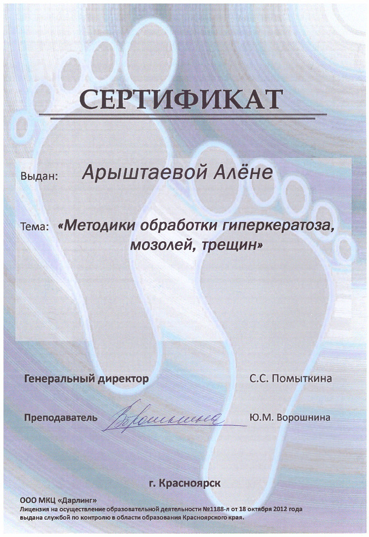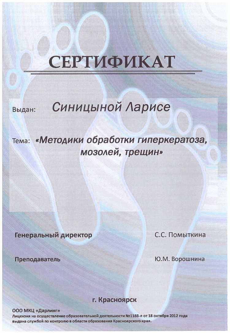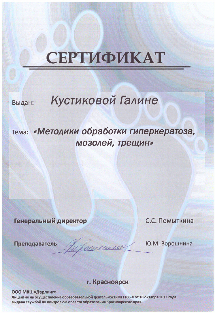 7 ноября 2016 г. в г. Красноярске специалисты салона красоты "Дарлинг" успешно прошли авторский семинар Ворошниной Юлии "Методики обработки гиперкератоза, мозолей, трещин"