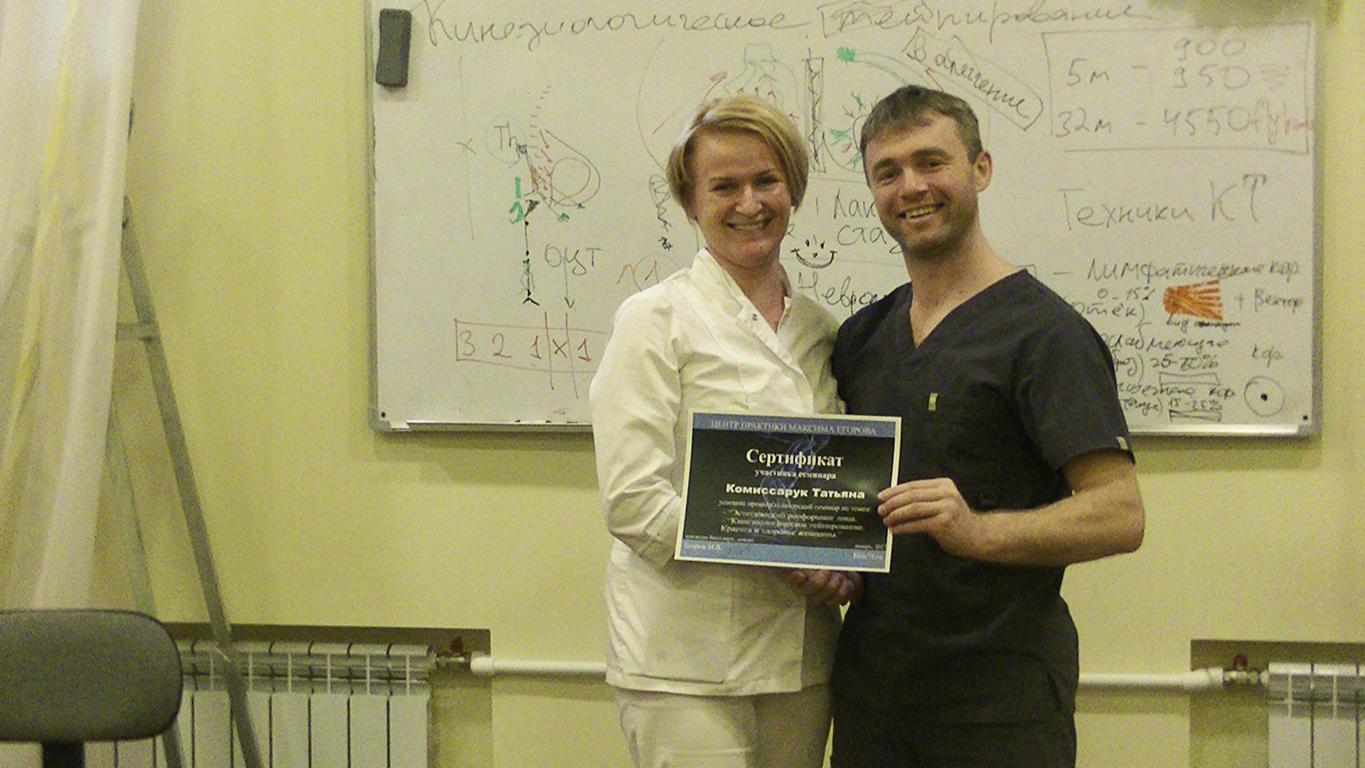 С 26 по 29 января 2017 г. в г. Новосибирске, в Центре практики Максима Егорова, косметолог салона красоты "Дарлинг" Татьяна Комиссарук прошла обучение на авторском семинарет Максима Егорова "Эстетический реформинг лица. Кинезиологическое тейпирование. Красота и здоровье женщины."