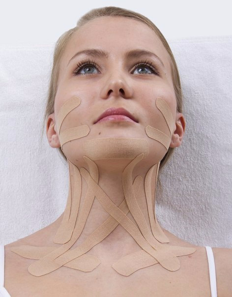 Процедура проводится после очищения лица и шеи, аппликации тейпов накладываются в зависимости от показаний (снятие отека, тонизация мышц). На лице кинезиотейп находится от 30 минут до 48 часов (время определяется индивидуально). Повторно аппликация накладывается через 3-5 дней. Снять тейп можно самостоятельно.