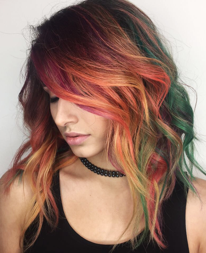 В настоящее время, все большую популярность набирают цветные волосы, которые даютвозможность бесконечно экспериментировать и творить со своим образом, тем самым подчеркивая красоту и индивидуальность.