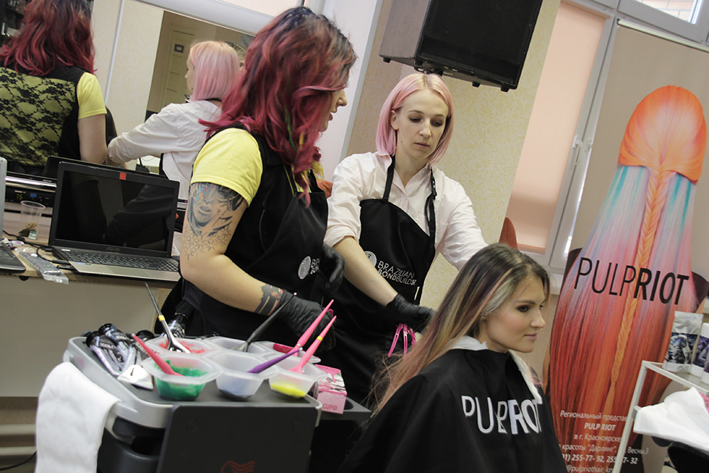 24 ноября 2017г. в г. Красноярске, в студии "Workshops Beauty" состоялась официальная презентация и шоу брендов Brazilian Bond Builder и PULP RIOT для парикмахеров Красноярска. Презентацию продуктов провел Игорь Позолотин (г. Москва) - ведущий технолог Brazilian Bond Builder b3 и Brazilian Blowout. По окончании шоу, на сцене были представлены модели художников салона красоты "Дарлинг"