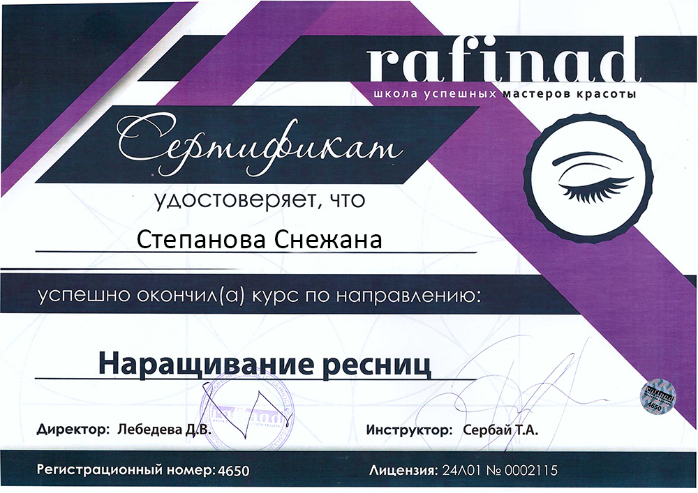 С 22 по 24 ноября 2018 г., в школе успешных мастеров красоты "Rafinad", стилист-визажист Снежана Степанова и косметолог Дарья Антоненко прошли курс по направлению "Наращивание ресниц"
