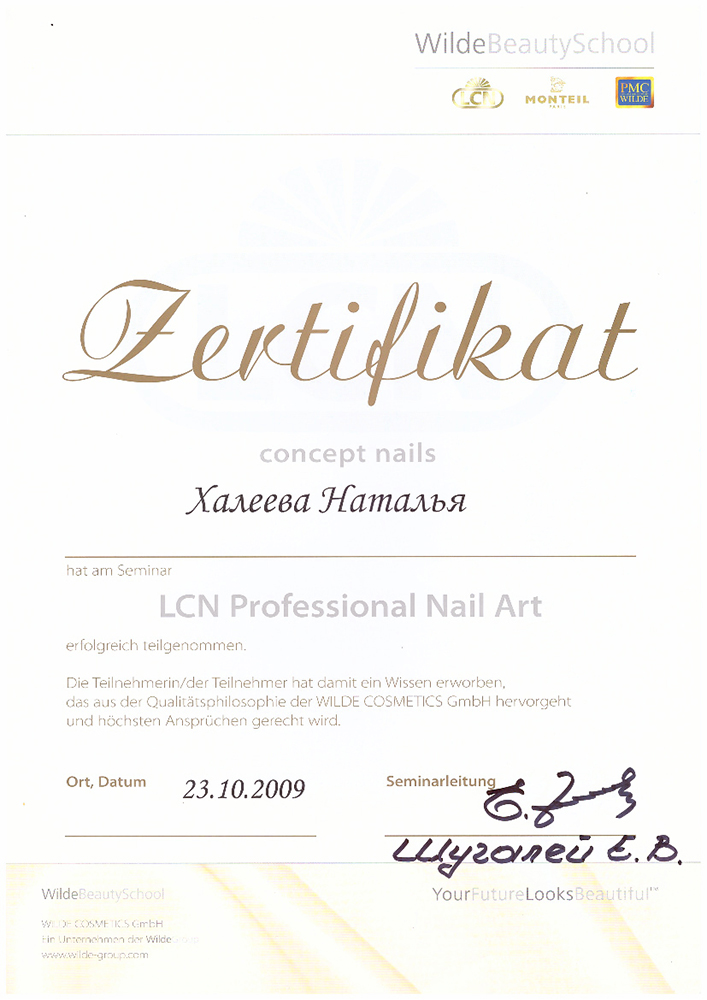 Май 2005 г., Красноярск, Центр эстетического развития "Флер" - присвоена квалификация "Мастер гелевого наращивания ногтей"