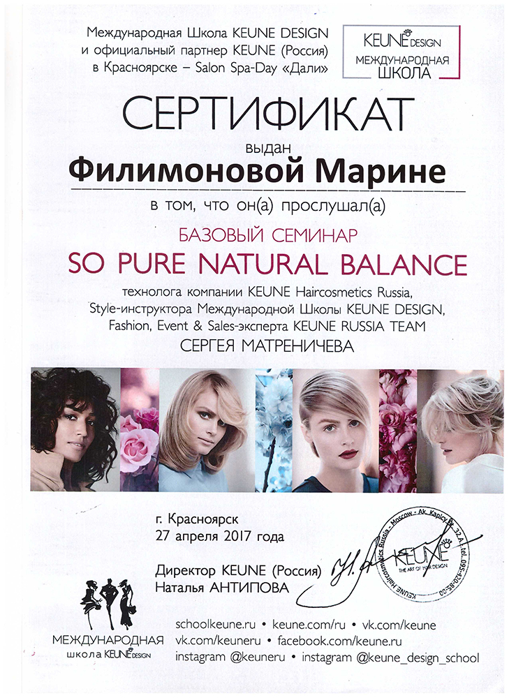 Апрель 2017 г., Красноярск, Международная школа KEUNE DESIGH – базовый семинар SO PURE NATURAL BALANCE технолога компании KEUNE Haircosmetics Russia, Style – инструктора Международной школы KEUNE DESIGH, Fashion , Event & Sales – эксперта KEUNE RUSSIA TEAM Сергея Матреничева.