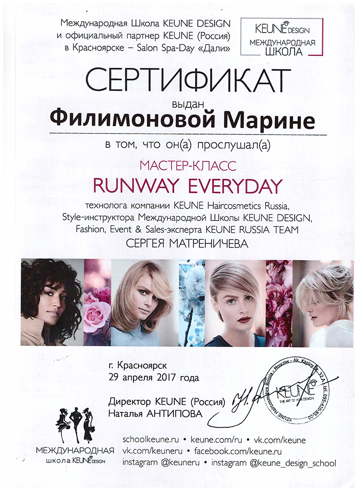 Апрель 2017 г., Красноярск, Международная школа KEUNE DESIGH – мастер – класс RUNWAY EVERYDAY технолога компании KEUNE Haircosmetics Russia, Style – инструктора Международной школы KEUNE DESIGH, Fashion , Event & Sales – эксперта KEUNE RUSSIA TEAM Сергея Матреничева.