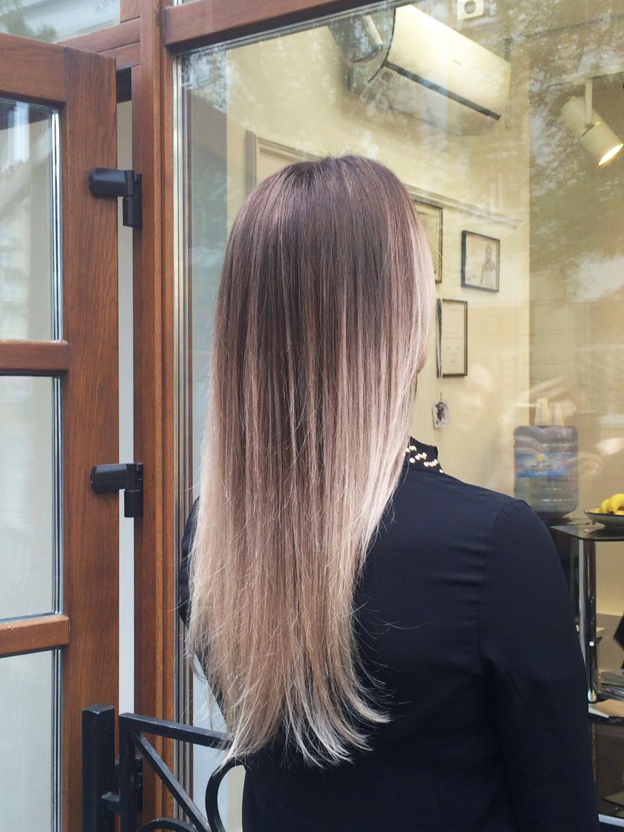 -окрашивание ОМБРЕ на натуральных волосах;