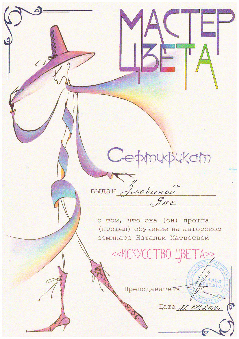 По итогам учебного семинара всем участникам курса было присвоено звание "Мастер цвета"