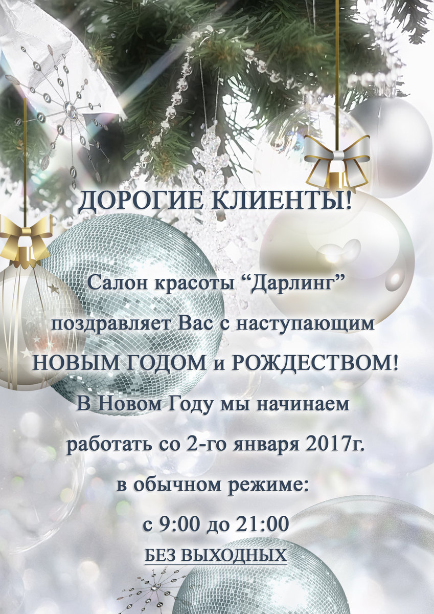 Режим работы салонов красоты "Дарлинг" в новогодние праздники