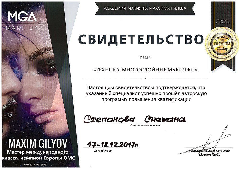 17-18 декабря 2017г. в г. Красноярске, студии "Workshops Beauty" визажист, стилист, мастер по прическам - Снежана Степанова прошла авторский курс повышения квалификации Максима Гилева "Техника. Многослойные макияжи".