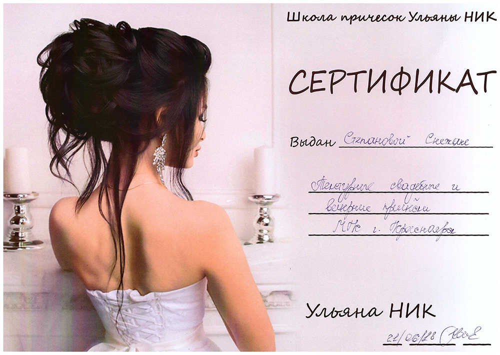 21 июня 2018г. в г. Красноярске, стилист, визажист, мастер по прическам Снежана Степанова прошла мастер – класс «Текстурные, свадебные и вечерние прически» Ульяны Ник.