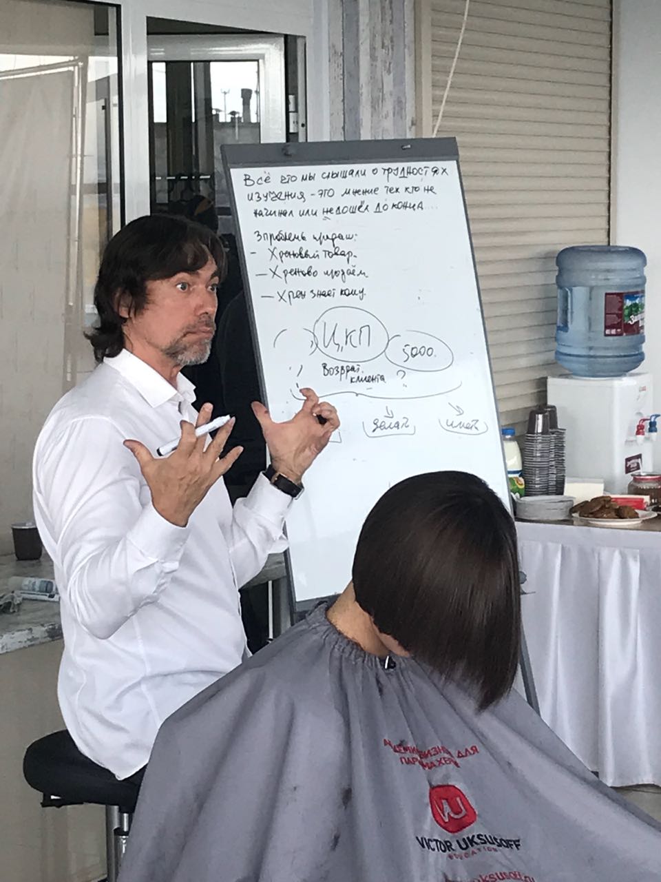 Автор – системы: Виктор Уксусова – лауреат Национальной премии в области Индустрии Красоты,Парикмахер года,Топ – стилист самых известных международных парикмахерских брендов, объездивший с мастер – классами все крупные города России, СНГ и ЕВРОПЫ. Этот талантиливый педагог, с высшим педагогическим образованием.