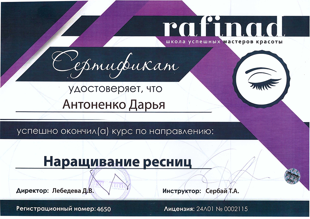 С 22 по 24 ноября 2018 г., в школе успешных мастеров красоты "Rafinad", стилист-визажист Снежана Степанова и косметолог Дарья Антоненко прошли курс по направлению "Наращивание ресниц"