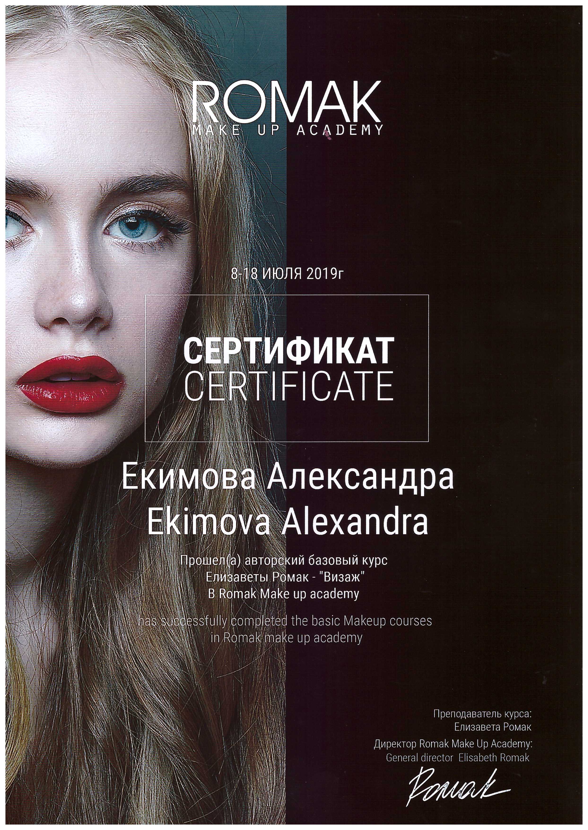 С 8 по 18 июля 2019 г. мастер по парикмахерскому искусству и визажу Александра Екимова прошла авторский базовый курс Елизаветы Ромак – «Визаж» в Romak Make up academy