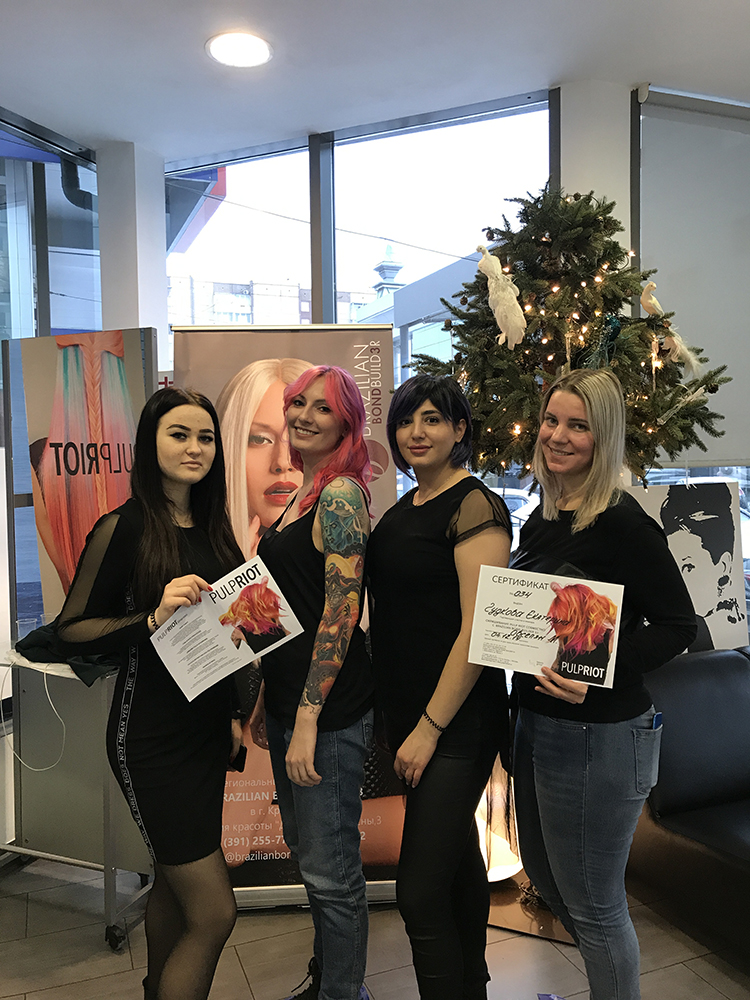 4 декабря 2019 г. Красноярске, в студии красоты «Дарлинг» , прошел семинар по продукции Pulp Riot и Brazilian Bond Builder b3