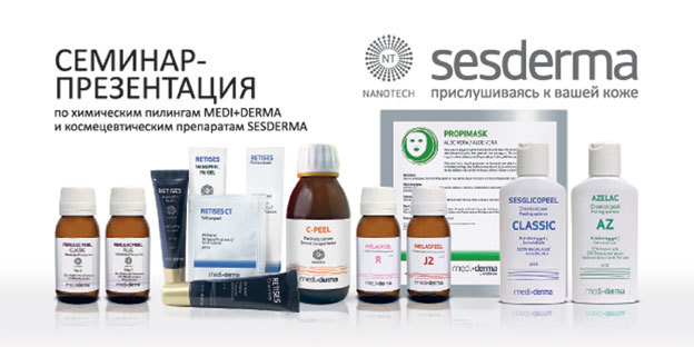 14-15 ноября 2013 года ( с 9.00- 18.30) в студии красоты "Дарлинг" состоится семинар-презентация по химическим пилингам Medi+Derma и космецевтическим препаратам Sesderma. В программе семинара:
