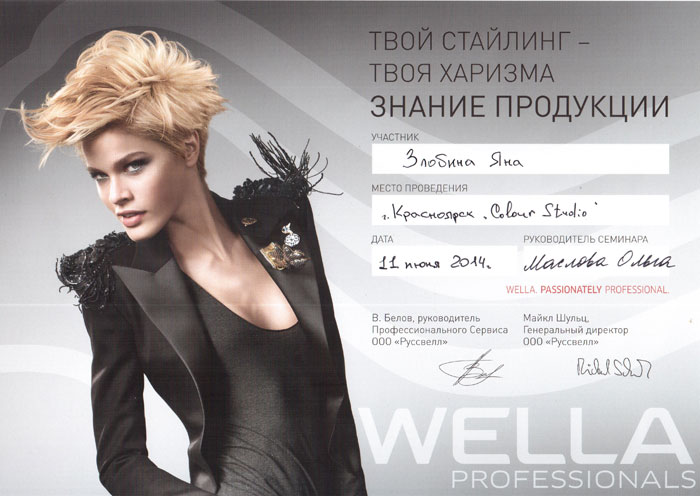 Июнь 2014 г. г. Красноярск, студия Wella - Семинар "Твой стайлинг- твоя харизма." Знание продукции.