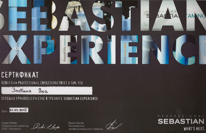 Апрель 2015 г. г. Красноярск, студия Wella - Семинар «SEBASTIAN EXPERIENCE». Фундаментальная программа, представляющая продукцию Sebastian. Позволяет свободно ориентироваться в коллекциях стайлинга, узнать преимущества каждого продукта, и главное, увидеть их в действии во время практики.