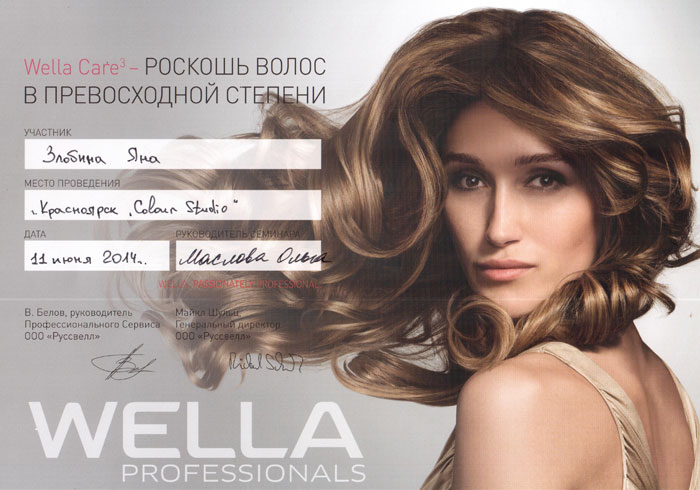 Август 2019 г., Новосибирск, Студия Wella - прохождение II фазы программы "MASTER COLOR EXPERT". Диплом Wella