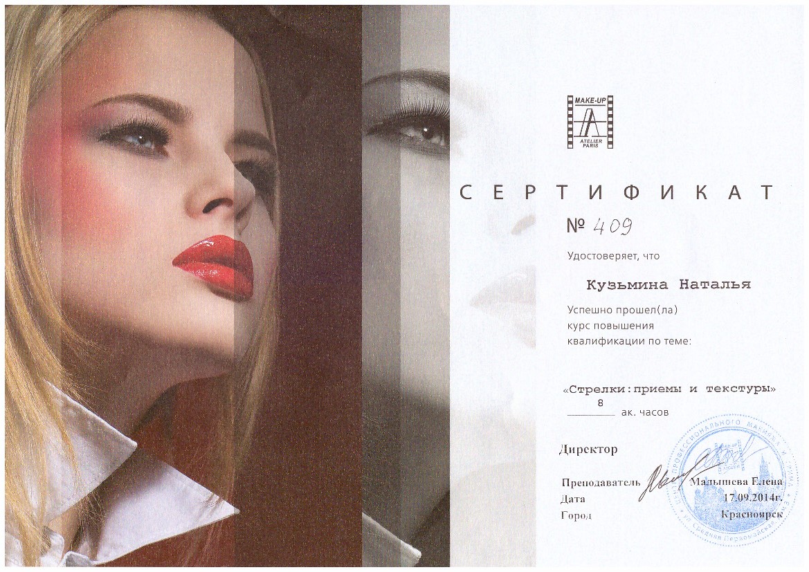 Сентябрь 2014 г., Красноярск, Международная академия красоты "Профи - центр" - курс повышения квалификации по теме: "Стрелки: приемы и текстуры ".