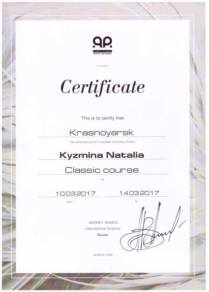 Март 2017 г., Красноярск, Студия красоты "Дарлинг" - Авторский курс повышения квалификации Андрея Акимова. Школа VIDAL SАSSOОN. Сегодня это одна из наиболее сильных школ с точки зрения создания моды в парикмахерском мире. Самые свежие идеи, классические и в тоже время креативные позволяют создавать неповторимые стрижки и окраски. 2-й уровень "СLASSIC COURSE" ОСНОВЫ КЛАССИЧЕСКОЙ СТРИЖКИ / CLASSIC FOUNDATION CUTTING "Андрей Акимов - сертифицированный тренер ведущей британской школы парикмахерского искусства "SACO", стилист, прошедший преподавательский курс в академии "Vidal Sassoon"," Архитектор волос", ежегодный участник различных парикмахерских мероприятиях и выставок в Астане, Лондоне, Нью-Йорке.