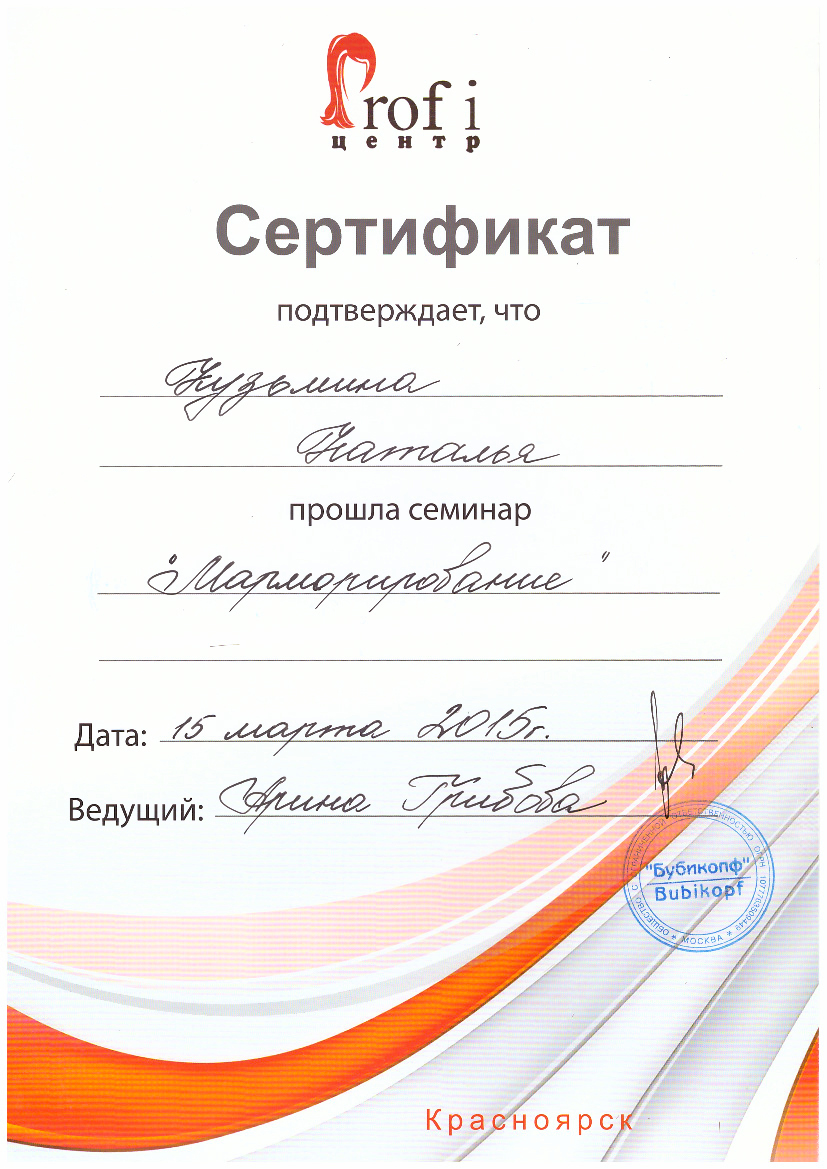 Март 2015 г., Красноярск, Международная академия красоты "Профи - центр" - семинар Арины Грибовой "Марморирование. Техники окрашивания"