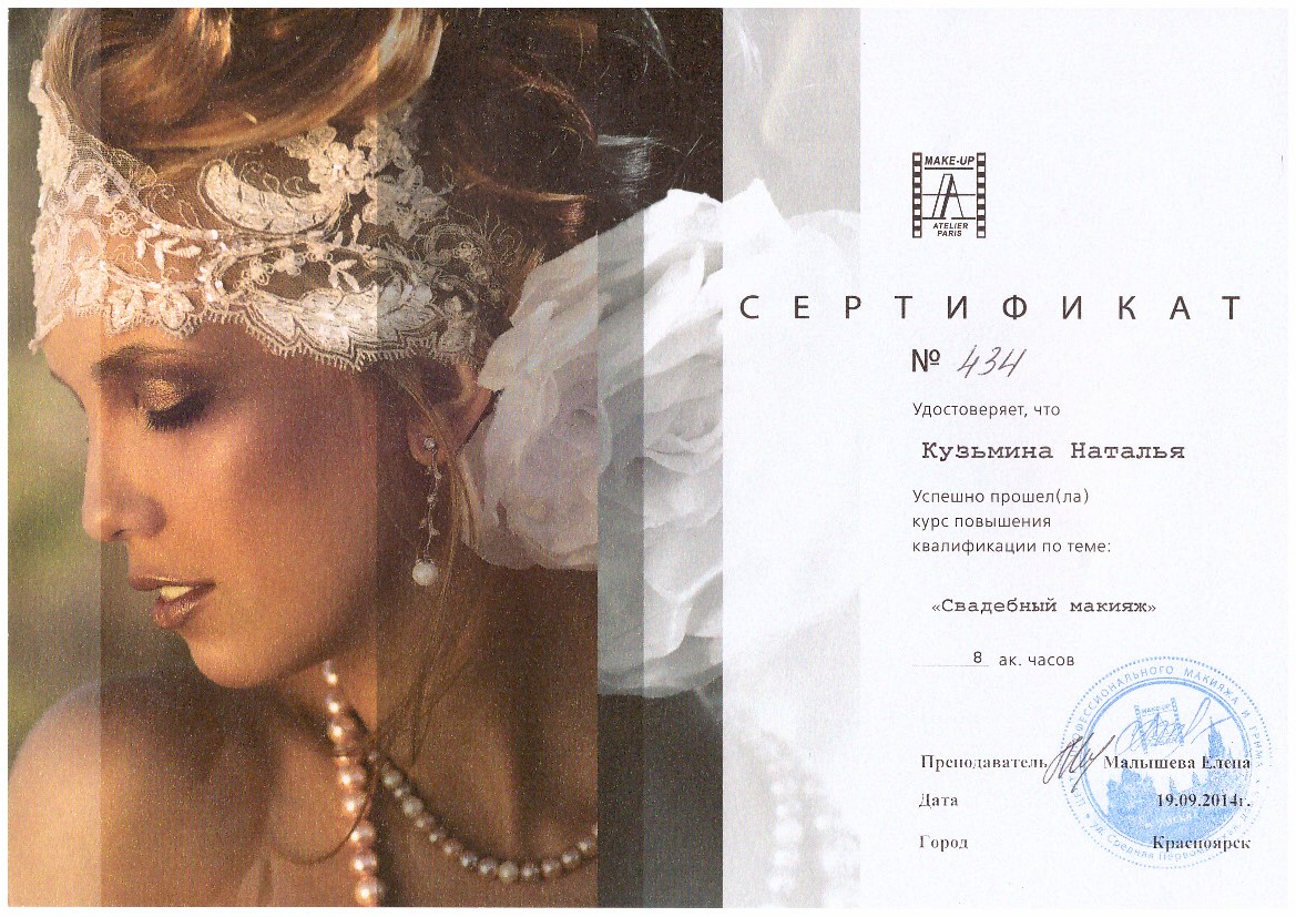 Сентябрь 2014 г., Красноярск, Международная академия красоты "Профи - центр" - курс повышения квалификации по теме: "Свадебны макияж"