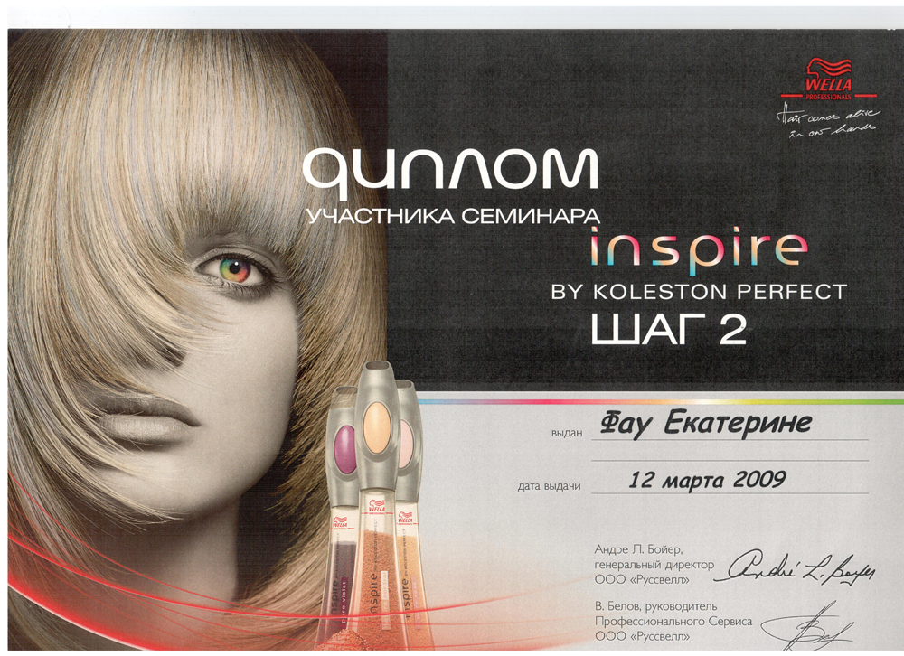 Март 2009 г. Новосибирск, студия Wella – Семинар INSPIRE, Step 2. «Гармония цвета Inspire by Koleston Perfect». Авторское окрашивание.