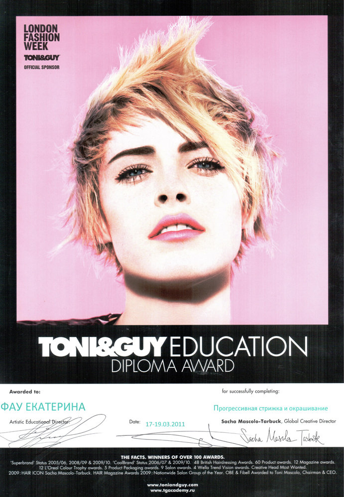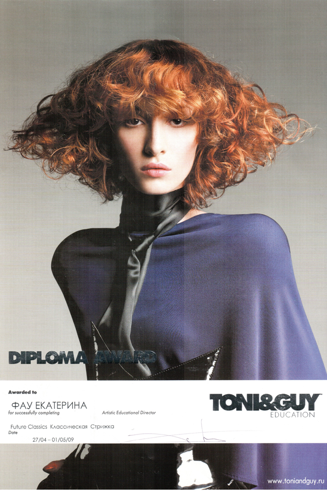 Окончен курс: - «Future Classics» (Классика будущего). Фундаментальные методы стрижки TONI&GUY и техники с практической отработкой. Классическая стрижка.