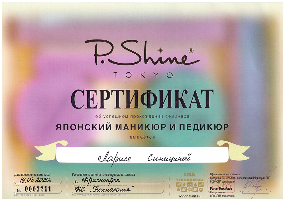 Март 2020 г., Красноярск - P. Shine Tokyo. Семинар "Японский маникюр и педикюр"