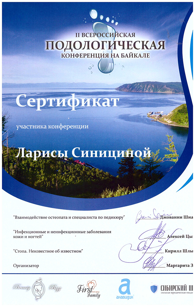Cентябрь 2018 г., Иркутск - II подологическая конференция на Байкале "Взаимодействие остеопата и специалиста по педикюру" "Инфекционные и неинфекционные заболевания кожи и ногтей" Стопа. Неизвестное об известном"