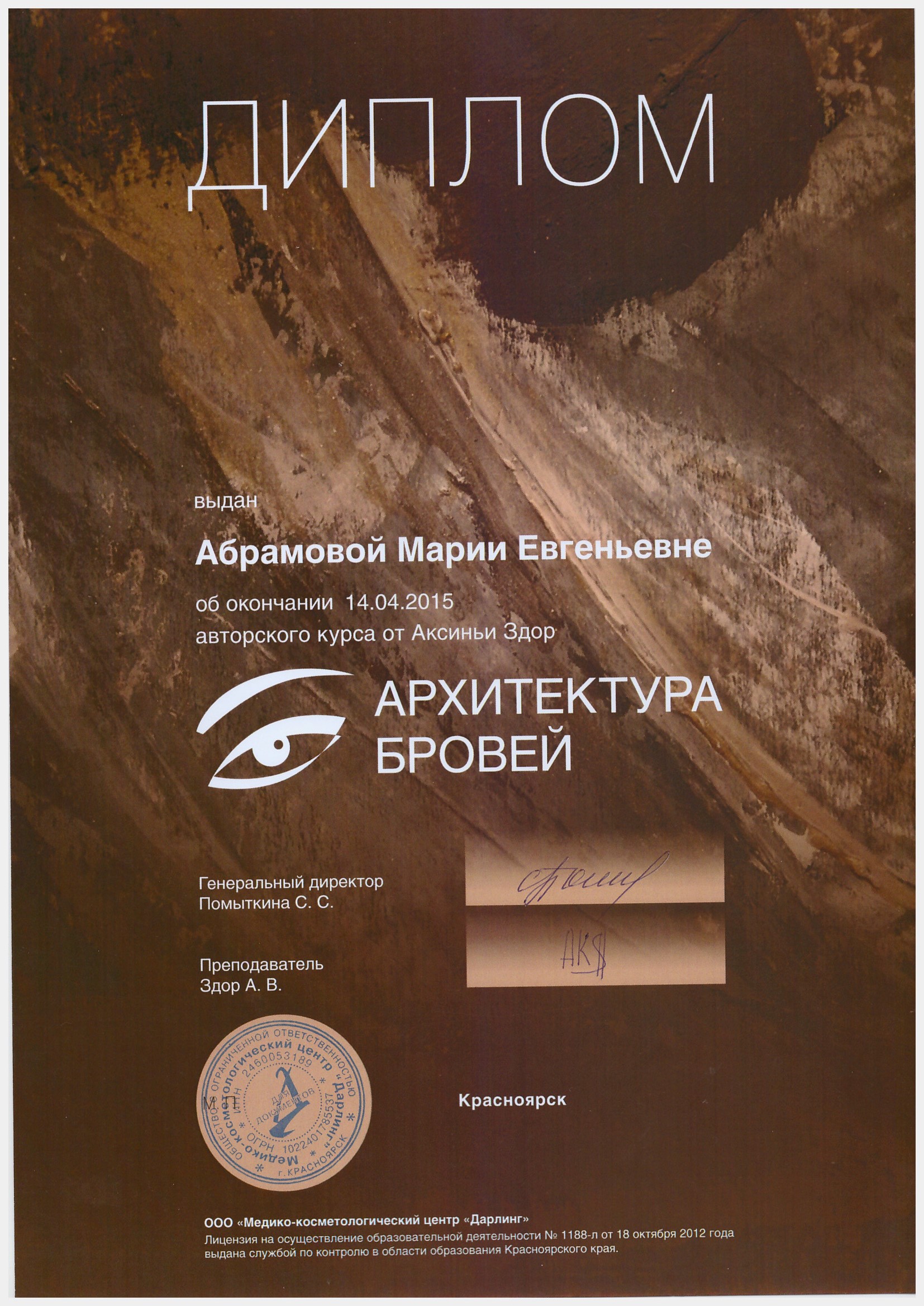 Апрель 2015 г. г. Красноярск, салон красоты "Дарлинг"- Авторский курс от Аксиньи Здор "Архитектура бровей".